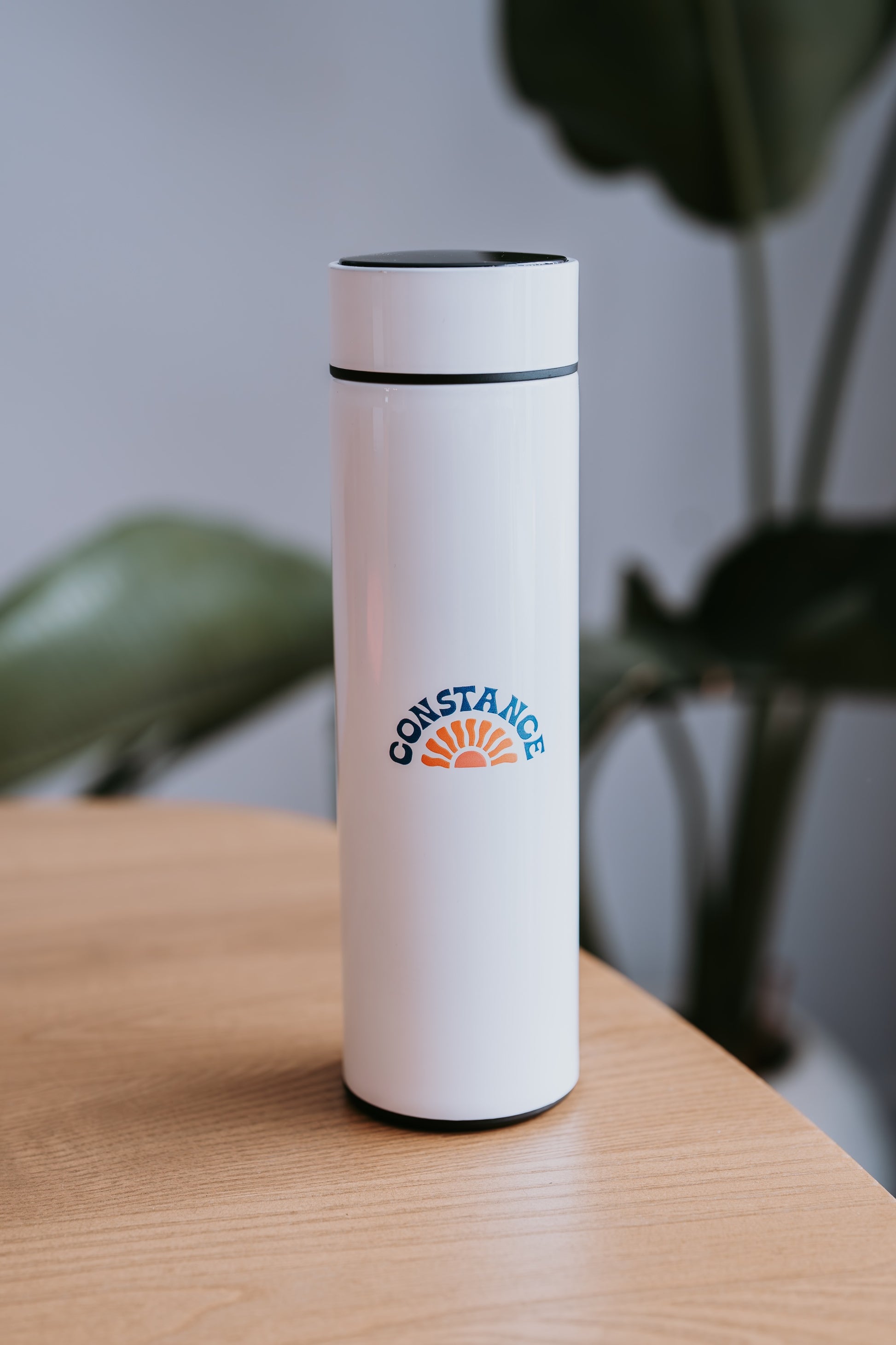 Un format de 16 oz fait sur le long afin de convenir à tous les portes gobelets et pour rentrer facilement dans ton sac. Indiquant la température, tu pourras toujours savoir si ton eau est encore froide ou si ton café est trop chaud. À noter qu'il est préférable de la laver à la main et que le couvercle ne va pas au lave-vaisselle.